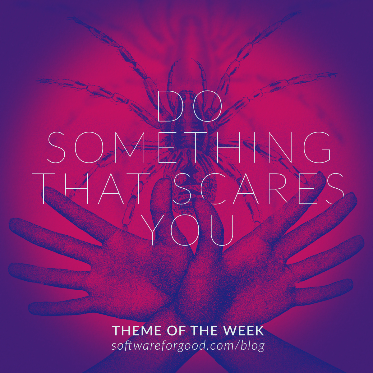 This week I encourage you to do something that scares you. Maybe instead of avoiding a spider or killing it, let it hang out nearby or bring it outside. Maybe you’re not afraid of spiders, but you’re afraid of people who are different from you. This week, get to know someone different from you or strike up a conversation with someone to whom you wouldn’t usually talk.