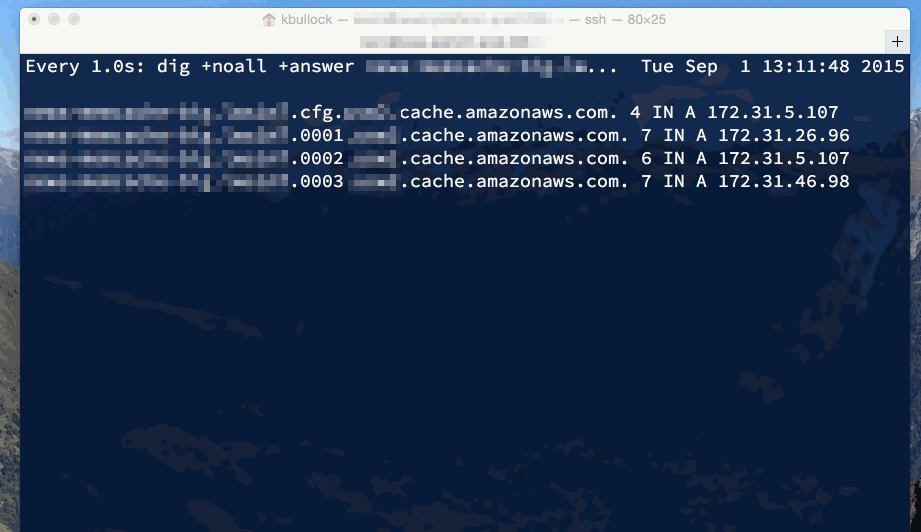 $ dig -t any +noall +answer test-cluster.d00b1e.cfg.use1.cache.amazonaws.com